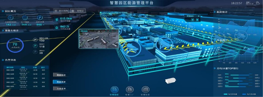 园区志在打造全球智慧能源产业示范基地,包括面向电力、轨道交通、石油化工、新能源等全球中高端行业用户的智能电气设备、智能制造与加工中心、智能制造及数字化工厂示范基地、智能微电网示范项目等以及科创产业开发与孵化运营。此次智慧园园区能源管理平台从园区管理和厂区管理两个方向入手,园区管理通过一张图展示园区安全、能耗的整体运行情况,厂区管理则重点展示变电站运行状况、变配室设备情况以及接线路联通等三维仿真,通过我公司AIOT板块接入实时状态数据,形成独具特色的数字孪生+AIOT智慧园区能源管理平台。该平台不仅实现园区可视化管理,也为区域性创新园区能源管理梳理一个典范。